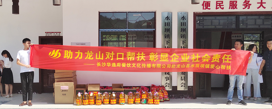 華逸府響應(yīng)政府扶貧助農(nóng)政策,堅(jiān)持每年在政府扶貧平臺(tái)采購,開展對(duì)口幫扶愛心捐贈(zèng)活動(dòng),與當(dāng)?shù)卣炗喠宿r(nóng)副產(chǎn)品定向收購協(xié)議,解決貧困群眾農(nóng)產(chǎn)品銷售最后一個(gè)環(huán)節(jié)的擔(dān)憂。